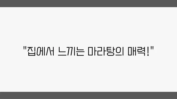 마라탕은 다양한 재료와 매운 맛이 어우러진 훌륭한 한 그릇 요리입니다. 그 유연성과 조화로운 맛은 많은 사람들에게 적지 않은 사랑을 받고 있으며, 각자의 취향에 따라 다채롭게 즐길 수 있는 점은 큰 장점으로 평가받고 있습니다. 직접 만든 마라탕은 눈과 입을 모두 만족시킬 수 있는 특별한 경험입니다. 요리하는 과정에서 자신만의 스타일을 발견하고 더 많은 사람들과 나누는 기쁨을 느껴보세요. 다음에 요리할 때는 조금 더 특별한 방법을 고민해보는 것도 좋겠습니다. 실험과 변화를 두려워하지 않고 새로운 맛을 창조하는 기쁨을 느끼길 바랍니다!